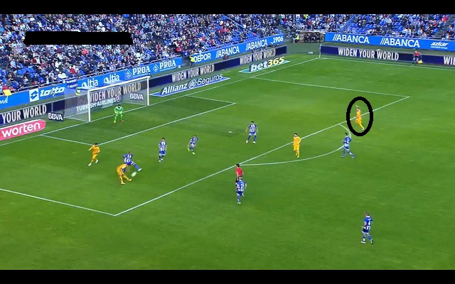 Es ist gewagt, gegen den FC Barcelona auf Abseits zu spielen, nicht zuletzt weil Luis Suárez sich oftmals am Rande des Abseits bewegt und man sich daher keinen Fehler erlauben darf. Depor schaffte es allerding sehr selten, das Abseits zu provozieren, weil die defensive Viererkette kaum einmal auf einer Linie agierte und man Barças Spieler selten anging. Letzteres lag entweder daran, dass die Heimmannschaft auf das Abseits vertraute oder die Abwehrspieler einfach nicht schnell genug geschaltet haben.